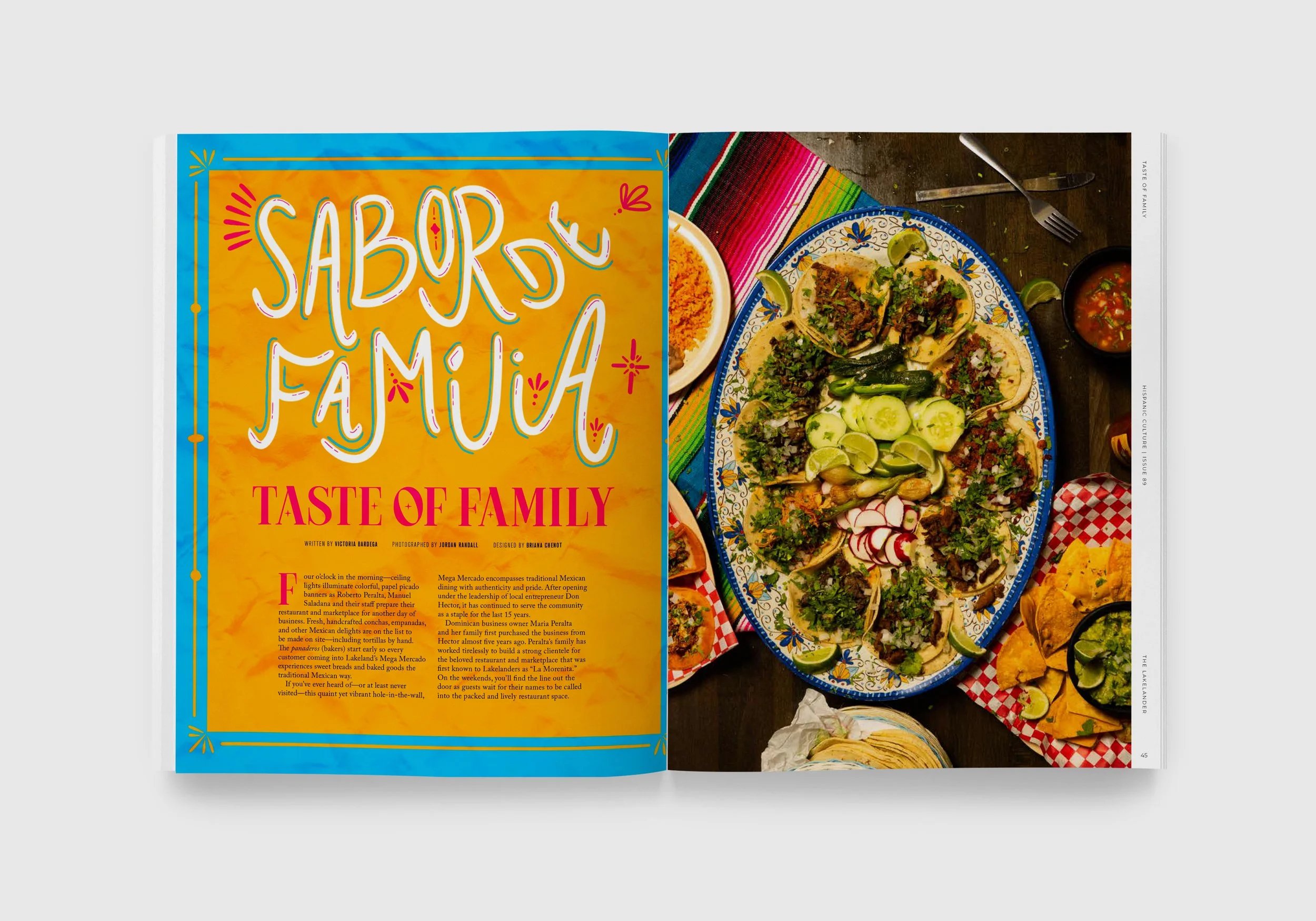 In this issue, it was important to show the exciting and festive aspects of hispanic culture. The vibrant colors jump off of the page to entertain the reader while emulating the celebratory characteristics of the many different hispanic cultures. This is also displayed through the hand-drawn illustrations and elements throughout the feature.